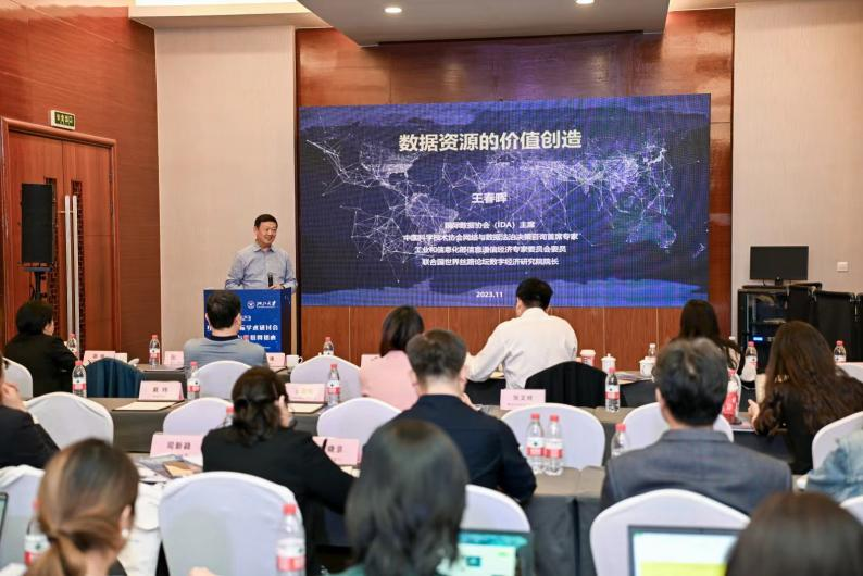 浙江大學(xué)網(wǎng)絡(luò)空間安全學(xué)院雙聘教授、中國(guó)科學(xué)技術(shù)協(xié)會(huì)網(wǎng)絡(luò)與數(shù)據(jù)法治決策咨詢首席專家王春暉教授以《通過(guò)數(shù)據(jù)資源的價(jià)值創(chuàng)造》為主題做了三個(gè)方面的發(fā)言。首先從國(guó)家數(shù)據(jù)局中歸納出“3+1+N”的使命任務(wù),“3”是統(tǒng)籌推進(jìn)數(shù)字中國(guó)、數(shù)字經(jīng)濟(jì)、數(shù)字社會(huì)規(guī)劃和建設(shè),在數(shù)據(jù)資源的整合利用中,強(qiáng)調(diào)了國(guó)家數(shù)據(jù)局發(fā)揮著“統(tǒng)籌”的重要作用;“1”為《構(gòu)建數(shù)據(jù)基礎(chǔ)制度更好發(fā)揮數(shù)據(jù)要素作用的意見(jiàn)》(數(shù)據(jù)二十條);“N”是在這個(gè)基礎(chǔ)上構(gòu)建若干個(gè)制度,從而形成數(shù)據(jù)法律體系。第二,王春暉教授從數(shù)據(jù)要素中闡明了原始數(shù)據(jù)、數(shù)據(jù)資源、數(shù)據(jù)資產(chǎn)和數(shù)據(jù)產(chǎn)品的概念,并強(qiáng)調(diào)要重點(diǎn)研究和揭示數(shù)據(jù)要素如何通過(guò)提高勞動(dòng)生產(chǎn)力,然后通過(guò)增加價(jià)值量,從而創(chuàng)造數(shù)據(jù)價(jià)值的機(jī)理。第三,在構(gòu)建數(shù)據(jù)基礎(chǔ)制度的底層邏輯中,關(guān)鍵在于協(xié)調(diào)和處理與數(shù)據(jù)生產(chǎn)力發(fā)展相適應(yīng)的數(shù)字化生產(chǎn)關(guān)系,實(shí)現(xiàn)數(shù)據(jù)要素與實(shí)體經(jīng)濟(jì)融合,才能逐步推動(dòng)數(shù)字經(jīng)濟(jì)走向高級(jí)階段。